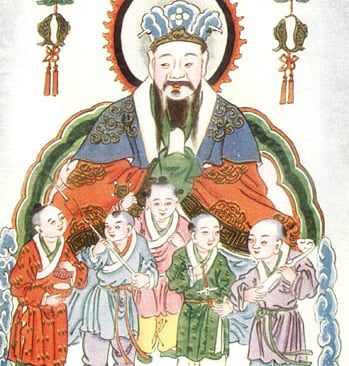 El origen mítico de Zaoshen se rastrea en el Huainanzi, donde se afirma que el Emperador del Fuego, Yandi —figura legendaria asociada al descubrimiento del fuego— se convirtió tras su muerte en el dios del hogar.